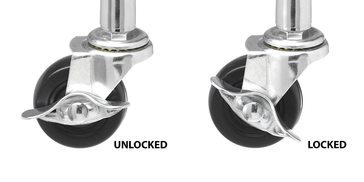 4 wheels (2 locking)This mobile station can be easily and conveniently rolled around the kitchen. With 2 locking wheels the cart stays securely in place preventing unwanted movement. |