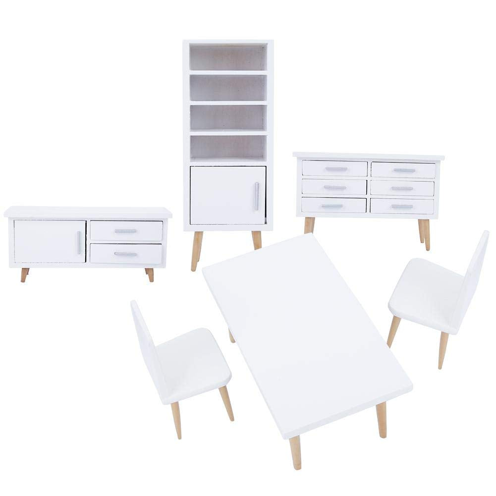 ● 【Diseño exclusivo】 Nuestros diseñadores dedican mucha atención y esfuerzo a nuestra línea de accesorios para muñecas.La mesa de comedor y las sillas de alta calidad son adecuadas para la muñeca favorita de su niña.Se verán bellamente lindos con tus amadas muñecas.